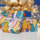 Este papel de embrulho tem uma design moderna do século médio de pássaros sobrepostos em cores de poder de flores. Quer cores diferentes? Me mande mensagem.
