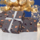 Papel De Presente Aves de Natal com chapéus, estrelas, bagas e cinza