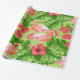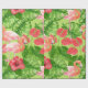 Padrão feito de pinturas com folhas de monstera, flores de hibisco, flores de flamingo e aves