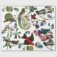 Papel De Presente AVES-primavera, PENAS COLORIDAS E FRUTAS