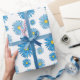 Papel De Presente Azul Aquarela e Caneta Asters Garland Padrão