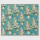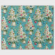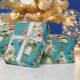 Papel De Presente Azul-Árvores-de-Natal Brancas