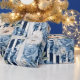 Papel De Presente Azul Branco Stripes Floral Aniversário