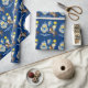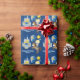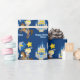 Papel de embrulho de festa de aniversário de Feira Renascentista Cuta, que apresenta um cavaleiro loiro numa armadura brilhante num cavalo próximo a um castelo azul da meia-idade. Um presente de crianças legal e personalizado para um pequeno príncipe que ama heróis fantásticos dos tempos antigos.