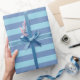 Papel De Presente Azul/Cinza e tiras azuis de Pastel