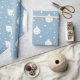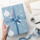 PAPEL DE PRESENTE AZUL COM ENFEITES DE NATAL BRANCOS