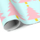 Envoltório de presente de época natalícia azul da hortelã com as árvores de Natal do rosa de bebê.