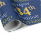 Este design de papel de embrulho apresenta uma mensagem como "FELIZ 34º ANIVERSÁRIO", com o "34º" a ter uma aparência falsa/imitação de ouro. Também apresenta um nome personalizado e um fundo de cor azul. Talvez possa ser utilizado quando se dá presentes para o trigésimo quarto aniversário de alguém. [~Z0000135]