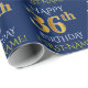 Este design de papel de embrulho apresenta uma mensagem como "FELIZ 36º ANIVERSÁRIO", com o "36º" a ter uma aparência falsa/imitação de ouro. Ele também apresenta um nome que pode ser personalizado e um fundo de cor azul. Talvez possa ser utilizado quando se dá presentes para o trigésimo sexto aniversário de alguém. [~Z0000135]