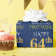 Este design de papel de embrulho apresenta uma mensagem como "HAPPY 64th BIRTHDAY", com o "64º" com aparência falsa/imitação de ouro. Ele também apresenta um nome personalizável e um fundo de cor azul. Talvez possa ser utilizada quando se dá presentes para o sexagésimo quarto aniversário de alguém. [~Z0000135]