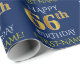 Este design de papel de embrulho apresenta uma mensagem como "FELIZ 66º ANIVERSÁRIO", com o "66º" com aparência falsa/imitação de ouro. Ele também apresenta um nome que pode ser personalizado, e um fundo de cor azul. Talvez possa ser utilizada quando se dá presentes para o sexagésimo sexto aniversário de alguém. [~Z0000135]