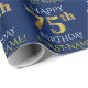 Papel De Presente Azul, Dourado "FELIZ 75 ANOS"