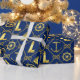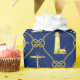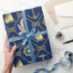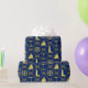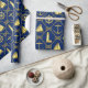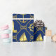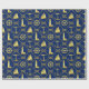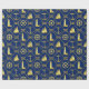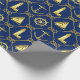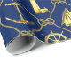 Use este papel náutico clássico de embrulho para todos os seus eventos náuticos temáticos, como casamentos, festas de casa, chás de fraldas, aniversários. Elementos náuticos Dourados, farol, roda, âncora e veleiro do navio, emoldurados por corda de ouro com nós náuticos contra fundo azul marinho.