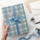 Papel De Presente Azul e Cinza de pasta mole Gingham