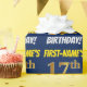 Este design de papel de embrulho apresenta uma mensagem como "PRIMEIRO NOME'S 17th BIRTHDAY!", com o "17º" a ter uma aparência falsa/imitada de cor dourada, e com o nome e "BIRTHDAY" numa fonte divertida e ousada. O nome pode ser personalizado e o plano de fundo tem cor azul. Um papel de embrulho como este poderia talvez ser usado para embrulhar presentes de aniversário que são dados a alguém em comemoração do seu 17º aniversário. [~Z0000209]