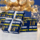 Este design de papel de empacotamento apresenta uma mensagem como "PRIMEIRO NOME'S 18º ANIVERSÁRIO!", com o "18º" a ter uma aparência de cor falsa/imitada em forma de ouro, e com o nome e "ANIVERSÁRIO" numa fonte divertida e ousada. O nome pode ser personalizado, e o fundo tem cor azul. Um papel de embrulho como este poderia talvez ser usado para embrulhar presentes de aniversário que são dados a alguém em comemoração do seu décimo oitavo aniversário. [~Z0000209]
