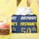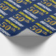 Este design de papel de empacotamento apresenta uma mensagem como "PRIMEIRO NOME DO 50º ANIVERSÁRIO!", com o "50º" a ter uma aparência de cor falsa/imitada em forma de ouro, e com o nome e o "ANIVERSÁRIO" numa fonte divertida e ousada. O nome pode ser personalizado, e o fundo tem cor azul. Um papel de embrulho como este poderia talvez ser usado para embrulhar presentes de aniversário que são dados a alguém em comemoração do seu quinquagésimo aniversário. [~Z0000209]