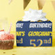 Este design de papel de embrulho apresenta uma mensagem como "GEORGIANA'S 52nd BIRTHDAY!", com o "52º" a ter uma aparência falsa/imitada de cor dourada, e com o nome e "BIRTHDAY" numa fonte divertida e ousada. O nome pode ser personalizado, e o fundo tem cor azul. Um papel de embrulho como este poderia talvez ser usado para embrulhar presentes de aniversário que são dados a alguém em comemoração de seus cinquenta segundos anos. [~Z0000209]