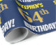 Este design de papel de embrulho apresenta uma mensagem como "O 64º ANIVERSÁRIO DE STEPHEN!", com o "64º" a ter uma aparência falsa/imitada de cor dourada, e com o nome e "ANIVERSÁRIO" numa fonte divertida e ousada. O nome pode ser personalizado, e o fundo tem cor azul. Um papel de embrulho como este poderia talvez ser usado para embrulhar presentes de aniversário que são dados a alguém em comemoração do seu sessenta e quarto aniversário. [~Z0000209]