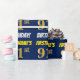 Este design de papel de embrulho apresenta uma mensagem como "PRIMEIRO NOME'S 91rua BIRTHDAY!", com a "91ruas" a ter uma aparência falsa/imitada de cor dourada, e com o nome e "BIRTHDAY" numa fonte divertida e ousada. O nome é personalizável e o fundo tem cor azul. Um papel de embrulho como este poderia talvez ser usado no embrulho de presentes de aniversário que estão sendo dados a alguém em comemoração de seus 90 anos de primeiro aniversário. [~Z0000209]