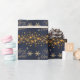 Papel De Presente Azul Festivo Elegante e Dourado Feliz Natal