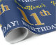Este design de papel de embrulho apresenta uma mensagem como "FirstName’s 11 BIRTHDAY!", com o "11" a ter uma aparência de cor falsa/imitada em ouro. O nome pode ser personalizado e o plano de fundo tem cor azul. Talvez possa ser utilizada quando se dá presentes para o décimo primeiro aniversário de alguém. [~Z0000181]