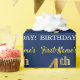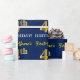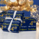 Este design de papel de embrulho apresenta uma mensagem como "Primeiro Nome é 4º ANIVERSÁRIO!", com o "4º" a ter uma aparência de cor falsa/imitada em ouro. O nome pode ser personalizado e o plano de fundo tem cor azul. Talvez possa ser utilizado quando se trata de embrulhar presentes para o quarto aniversário de alguém. [~Z0000181]