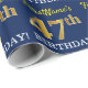 Este design de papel de embrulho apresenta uma mensagem como "FirstName’s 47th BIRTHDAY!", com o "47th" a ter uma aparência de cor falsa/imitada em ouro. O nome pode ser personalizado, e o fundo tem cor azul. Talvez possa ser utilizado quando se dá presentes para o quadragésimo sétimo aniversário de alguém. [~Z0000181]