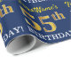 Este design de papel de embrulho apresenta uma mensagem como "FirstName’s 55th BIRTHDAY!", com o "55º" a ter uma aparência de cor falsa/imitada em ouro. O nome pode ser personalizado, e o fundo tem cor azul. Talvez possa ser utilizado quando se dá presentes para o quinquagésimo quinto aniversário de alguém. [~Z0000181]