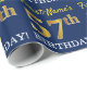 Este design de papel de embrulho apresenta uma mensagem como "First-Name’s 57th BIRTHDAY!", com o "57th" a ter uma aparência falsa/de cor dourada. O nome pode ser personalizado, e o fundo tem cor azul. Talvez possa ser utilizado quando se dá presentes para o cinquenta e sétimo aniversário de alguém. [~Z0000181]