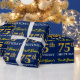 Este design de papel de embrulho apresenta uma mensagem como "First-Name’s 75th BIRTHDAY!", com o "75º" a ter uma aparência falsa/de cor dourada. O nome pode ser personalizado, e o fundo tem cor azul. Talvez possa ser utilizado quando se dá presentes para o setenta e cinco anos de alguém. [~Z0000181]