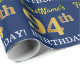 Este design de papel de embrulho apresenta uma mensagem como "FirstName’s 94th BIRTHDAY!", com o "94º" a ter uma aparência falsa/de cor dourada. O nome pode ser personalizado e o plano de fundo tem cor azul. Talvez possa ser utilizado quando se dá presentes para o nonagésimo quarto aniversário de alguém. [~Z0000181]