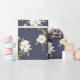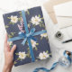 Papel De Presente Azul Marinho Floral Branco