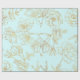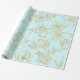 Papel De Presente Azul Pastel, com rosas Dourados
