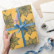 Papel De Presente Azul Prussiano em Flores Amarelas