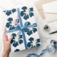 Papel De Presente Azul Prussiano no Hibiscus Branco
