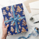 Este papel de embrulho de Natal tem um design de Cookies de Pão de Árvore com um fundo de padrão azul. Esta mão pintada com design tem 4 neve de gelo cobertas de árvores de Natal juntamente com biscoitos de flocos de neve e uma safra chamada padrão de flocos de neve no fundo. Um excelente padrão de biscoito de Natal para decorar seus presentes este ano durante a temporada de férias. Você pode fazer o padrão menor ou maior.