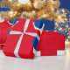 Papel De Presente Azul Vermelho Branco da Árvore Natal