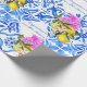 Papel De Presente Azulejos azuis Bougainvillea elegante personalizad