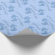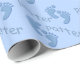Uma ilustração gráfica das pegadas azuis para bebês com o texto "Pitter Patter" no novo papel de embalagem para bebês.