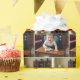 A baby joyfully peers through the screen of a retro television set while reaching for a bottle of milk on a wooden table