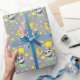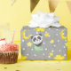 Panda de bebê bonito com lua amarela brilhante e estrelas em fundo bolinhas.