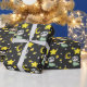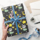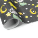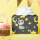 Panda de bebê bonito com lua amarela brilhante e estrelas em fundo bolinhas.