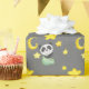 Panda de bebê bonita com lua amarela brilhante e estrelas em fundo de cinza. A cor de fundo pode ser alterada.