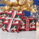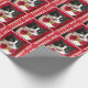 Este papel de embrulho de Natal é tão adorável. O papel mostra Pêssego ao Gato Tuxedo com sua língua saindo. As palavras "BAH HUMBUG" aparecem no topo e nos lados do papel sobre um fundo vermelho festivo. Este papel de embrulho vai adicionar um pouco de humor ao feriado. Copyright peachesthetuxedocat