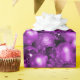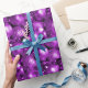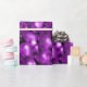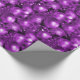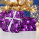 Um papel brilhante e brilhante de embrulho de Natal com um padrão festivo de decorações de árvores de Natal roxas e baubles para adicionar alguma reluz e glamour ao seu presente de Natal que embrulha esta época de Natal.