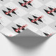 O design do estilo Arte Atômica Retro apresenta "bolhas" vermelhas/brancas/pretas centradas entre uma torre de quatro dimensões de planos geométricos sobre fundo de blocos coloridos de cinza