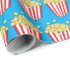 Perfeito para amantes de pipoca e gajos de cinema, este papel colorido de embrulho apresenta um padrão de baldes de pipoca.