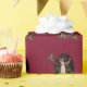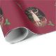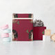 Uma bailarina pequena que retrata o caráter de Clara guardara o Nutcracker nesta imagem do feriado do balé do Nutcracker. O fundo é um vermelho escuro para combinar os presentes na imagem.