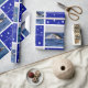 Papel de envolvimento impressionante do Natal que caracteriza diversos tiros de uma baleia que rompe, lançando seu corpo maciço inteiro fora da água, na frente da skyline bonita do paraíso dos surfistas de Austrália. Todos os anos os milhares de baleias migram para o norte da Antártica ao longo do litoral australiano para dar o nascimento a suas vitelas e raça.